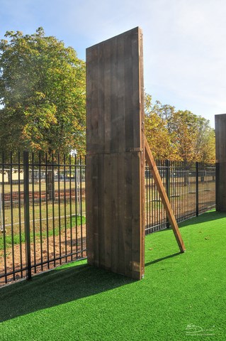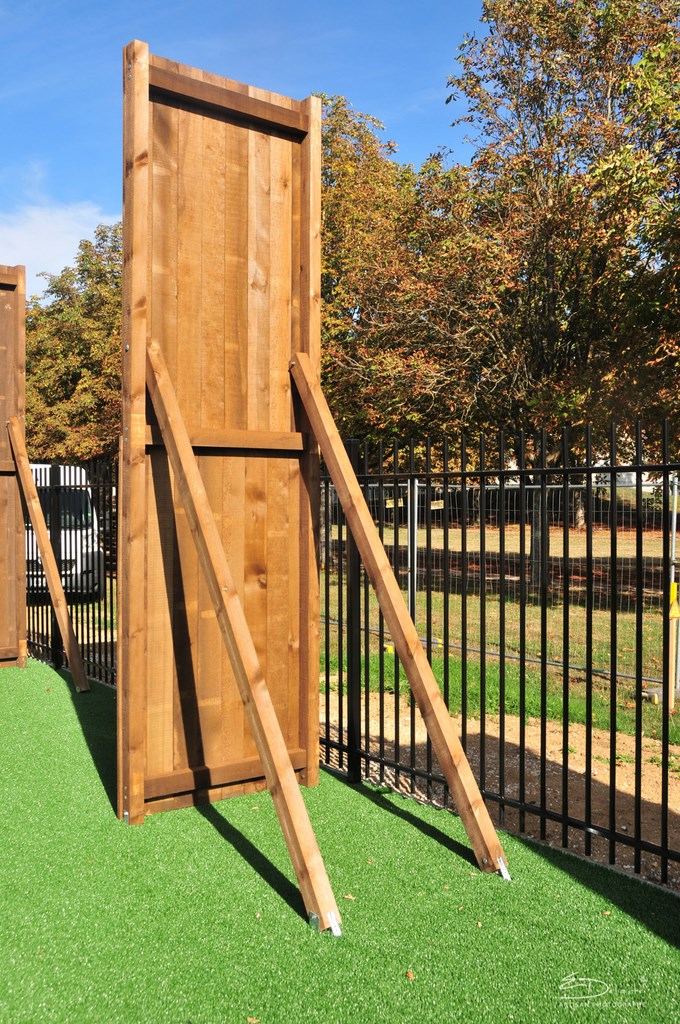 Garde en pin autoclavé. Les planches sont bouvetées pour une meilleures tenue aux flèches, et sont posées verticalement pour une meilleure tenue dans le temps. Construction robuste. Plan des massifs de béton fournit. Hauteur 4m, largueur 1.2m.