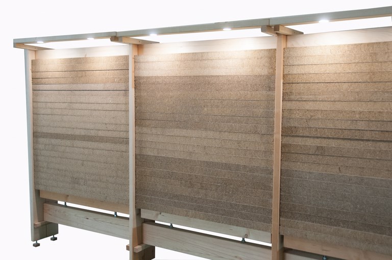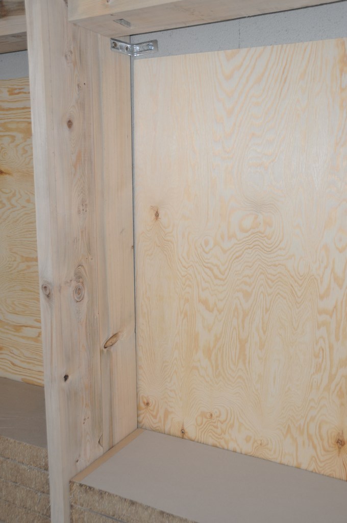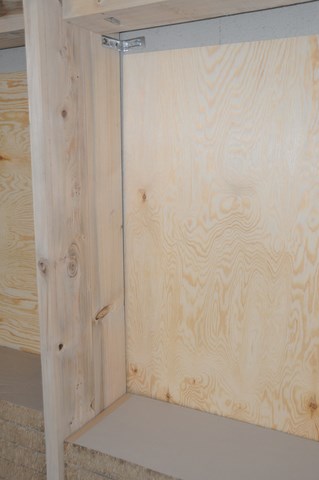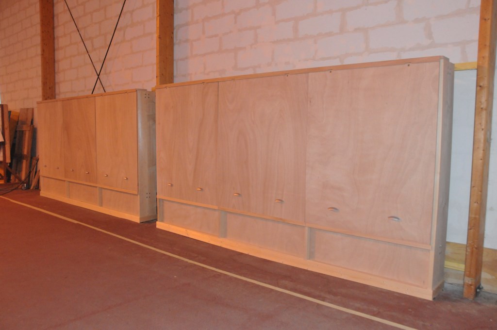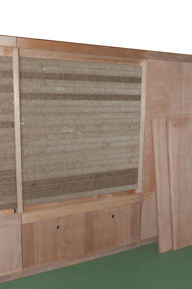 Option possible sur les panneaux : utilisation de l'espace bas pour réaliser un petit rangement de blason par exemple