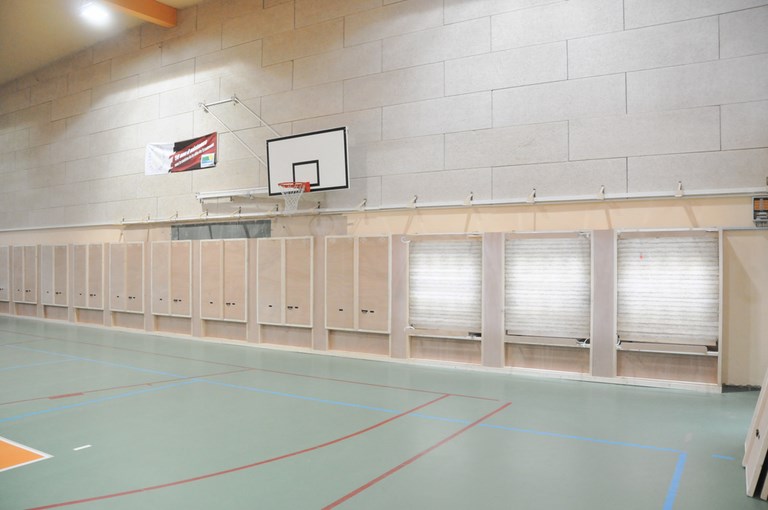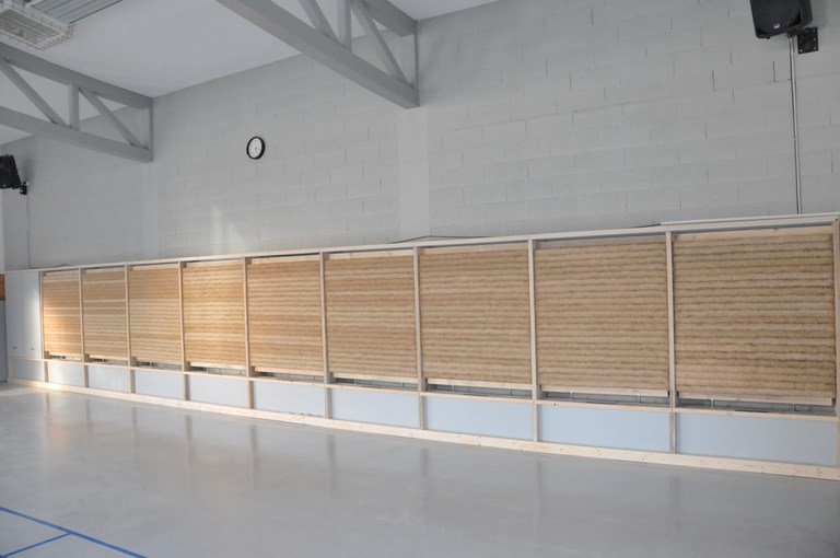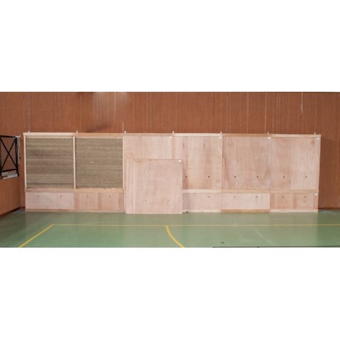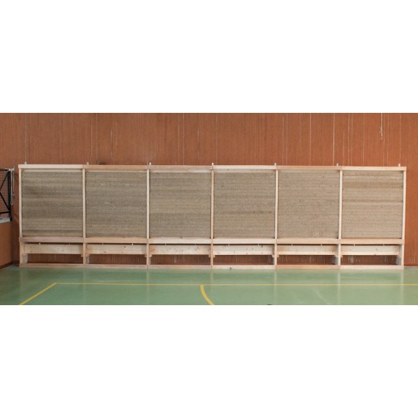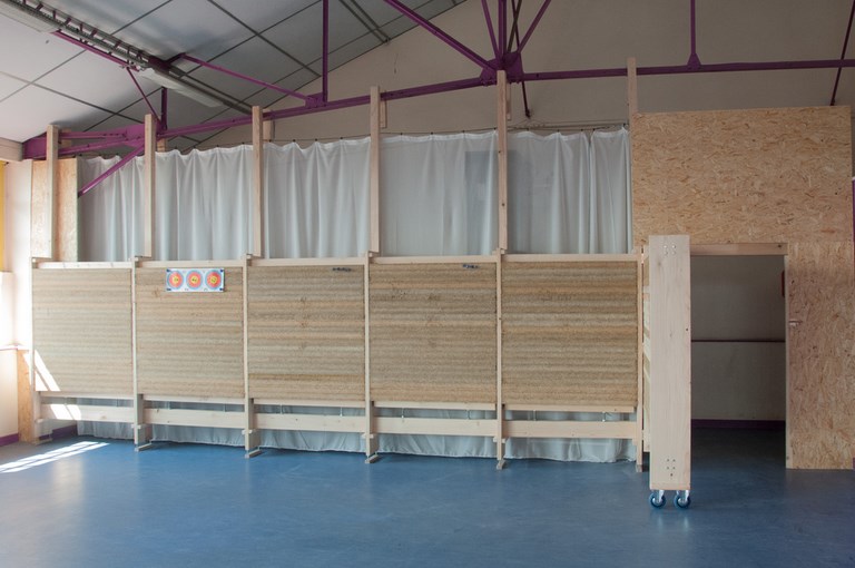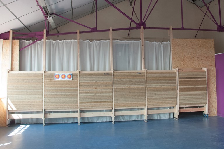 Mur de tir à l'arc réalisé entièrement en bois M1 (anti feu) ainsi que les stramits M1. Ces murs de tir sur mesure sont particulièrement adaptés aux salles omnisports. Chaque cible est équipée de puissants vérins de serrages.