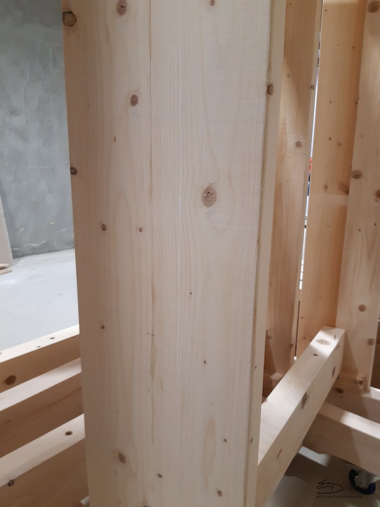 Fabrication en sapin sec hors cœur raboté, et arrondis avec soins.